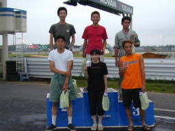 初?(97年の第4か5戦もて北以来)のリンクスSP12EXPは 雨が降ったり、やんだりで忙しいし大変でした。 ビギナーから上がってEXPにセンセーショナルデビューするには、 あと一つ順位が足らなかった。 もう、今後EXPでの入賞はありません!(キッパリ) kuriさん、記憶がぶっ飛んでます。 左は、チャンピオン!そして、右の人・・・今回のSP12EXPのウィナー(笑) スタートは、決まったと思う。 ちびは、ビギニクラスで5位
