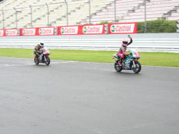 後ろを見ないで、必死に走るけどラストラップの1コーナー手前で抜かれました。